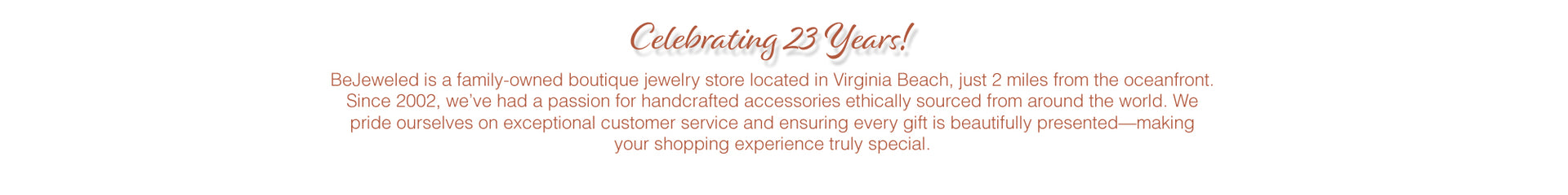 This month, we celebrate something truly special: 23 years of BeJeweled. Two decades and then some of beautiful jewelry, meaningful gifts, handcrafted artistry, and—most importantly—you. When we first opened our doors in downtown Norfolk in November 2002, we had no...