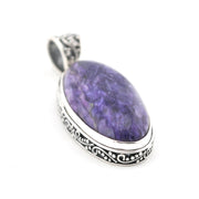 Sterling Silver Charoite 15x28mm Oval Bali Pendant