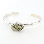 This fun pyrite cuff bracelet is handmade with sterling silver. Pyrite gemstone is set in a bezel setting and is in an adjustable cuff style bracelet.