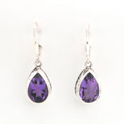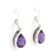 Sterling Silver Amethyst 8x12mm Tear Bali Dangle Earrings