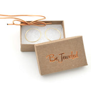 Enjoy our complimentary gift wrapping with every jewelry purchase, so your gifts arrive ready to give. Each piece is carefully placed in a natural kraft box with our copper logo, and includes a natural woven cotton pouch to help protect your jewelry from scratches. Your gift is then finished with our floral wrapping and a gold foil bow for a beautiful presentation. Our boxes are made from 100% recycled content with 75% post consumer materials and are recyclable.