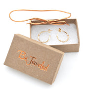 Enjoy our complimentary gift wrapping with every jewelry purchase, so your gifts arrive ready to give. Each piece is carefully placed in a natural kraft box with our copper logo, and includes a natural woven cotton pouch to help protect your jewelry from scratches. Your gift is then finished with our floral wrapping and a gold foil bow for a beautiful presentation. Our boxes are made from 100% recycled content with 75% post consumer materials and are recyclable.
