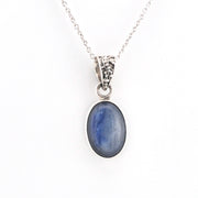 Sterling Silver Kyanite 9x14mm Oval Bali Bail Necklace