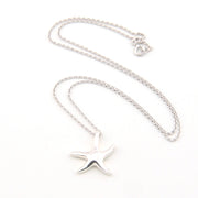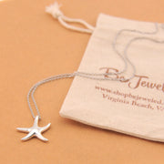 This sweet silver starfish pendant comes with an 18 inch long sterling silver diamond cut cable chain. To clean: simply use a polishing cloth to brighten the silver when needed.