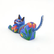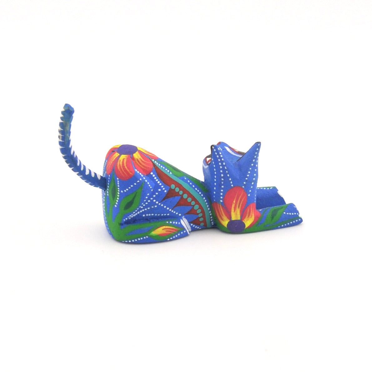 This colorful floral small cat resting carving is 2 1/2 inches long, 2 inches high and 3/4 inch wide.