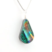Dichroic Glass Rainbow Green Small Teardrop Pendant