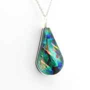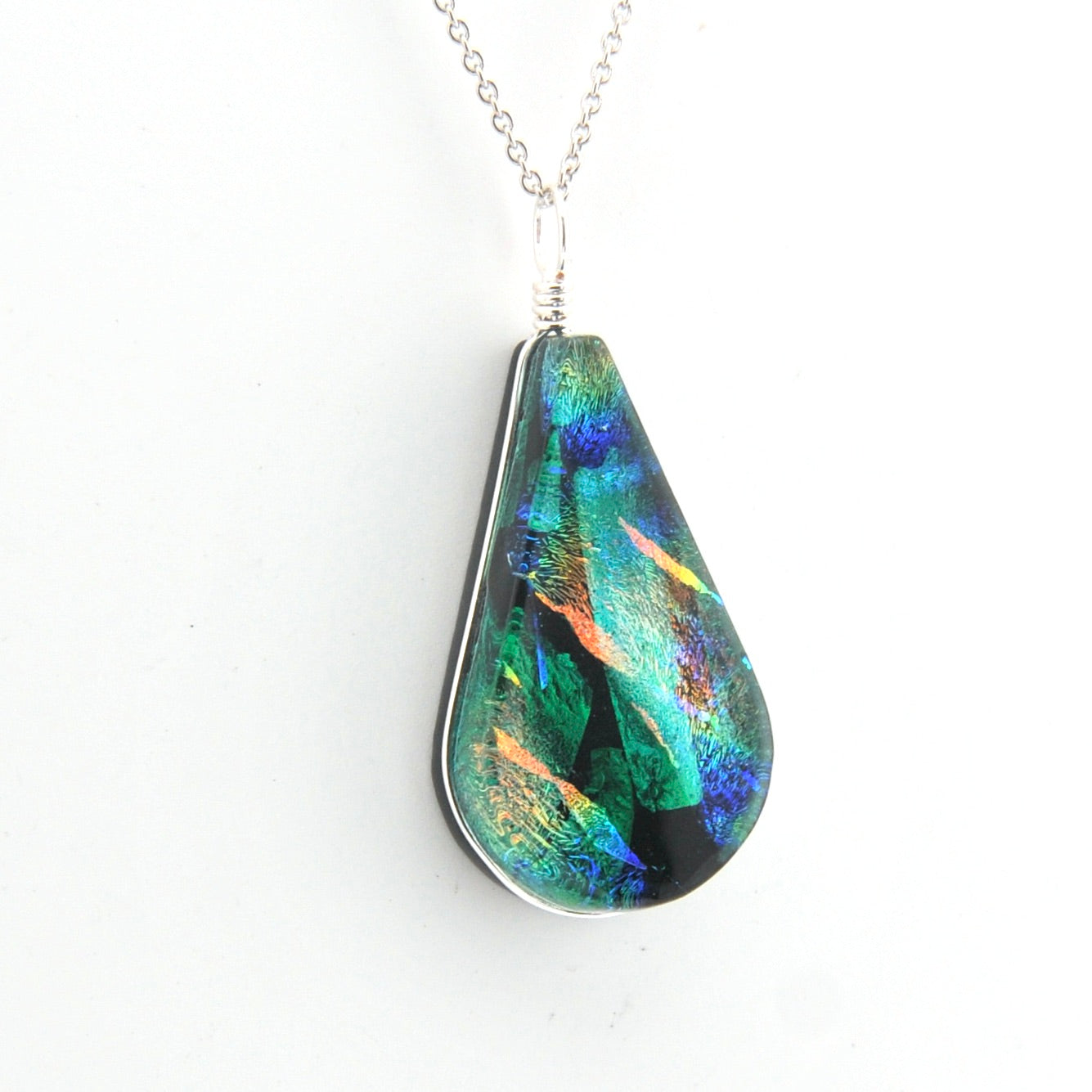 Dichroic Glass Rainbow Green Teardrop Pendant