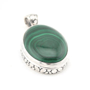 Sterling Silver Malachite 20x28mm Oval Bali Pendant