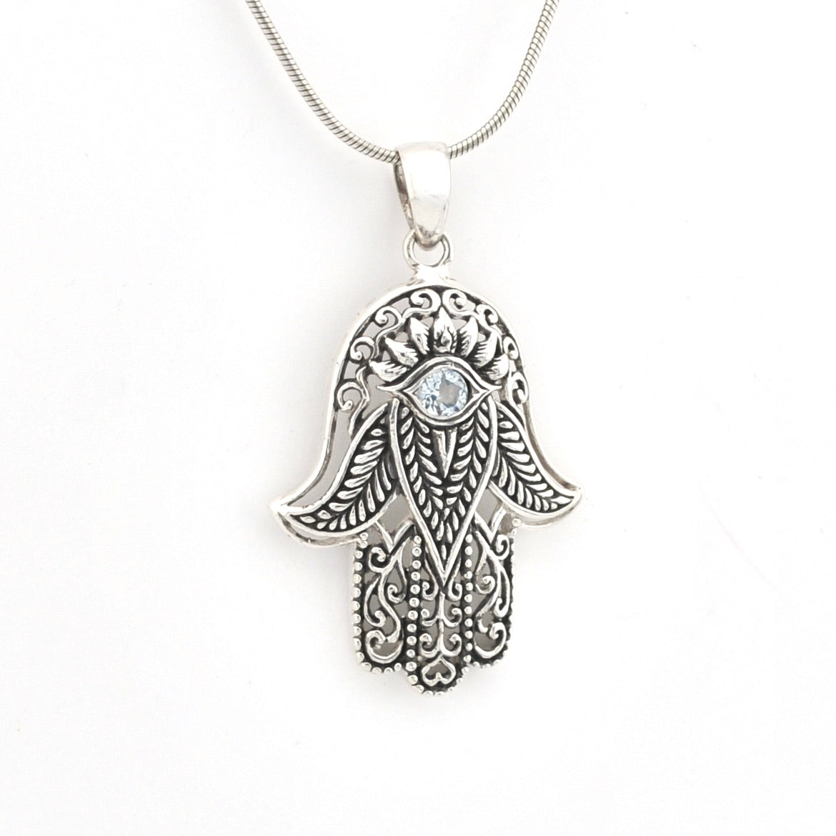 Sterling Silver Hamsa with Blue Topaz Pendant