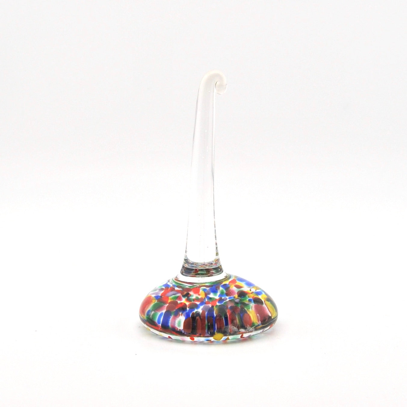 This multicolored party colored glass ring holder was handmade by Dottie Boscamp in Colorado.