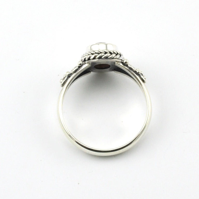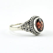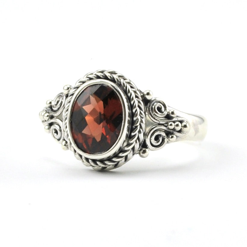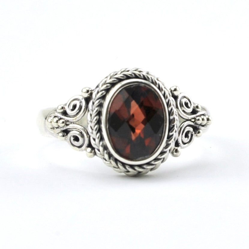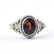 Sterling Silver Garnet 6x8mm Oval Bali Ring Size 7