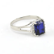 Sterling Silver Created Sapphire 2.8ct Rectangle CZ Ring Size 7
