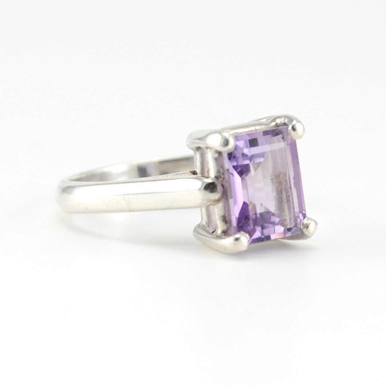 Sterling Silver Amethyst 7x9mm Prong Set Rectangle Ring Size 8
