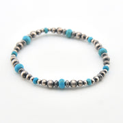 Brushed Sterling Silver Multiple Turquoise Bead Stretch Bracelet